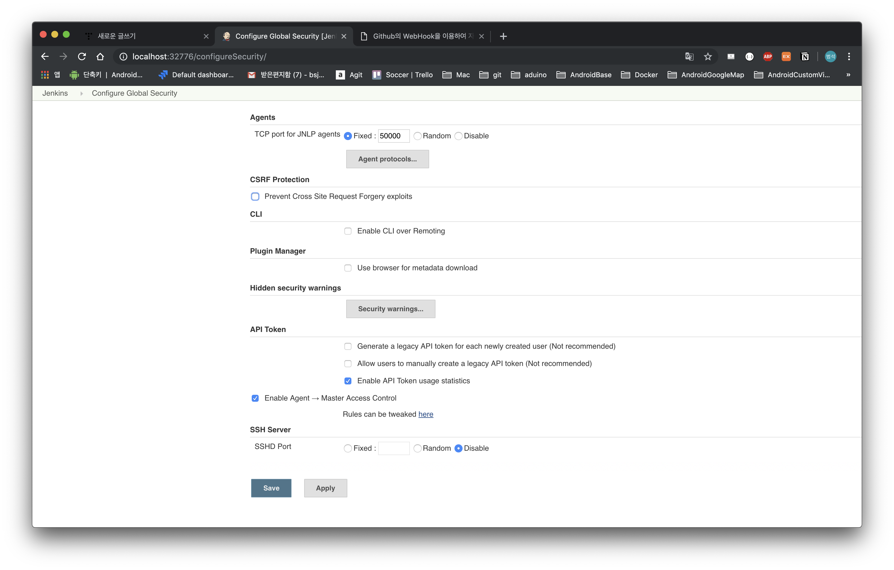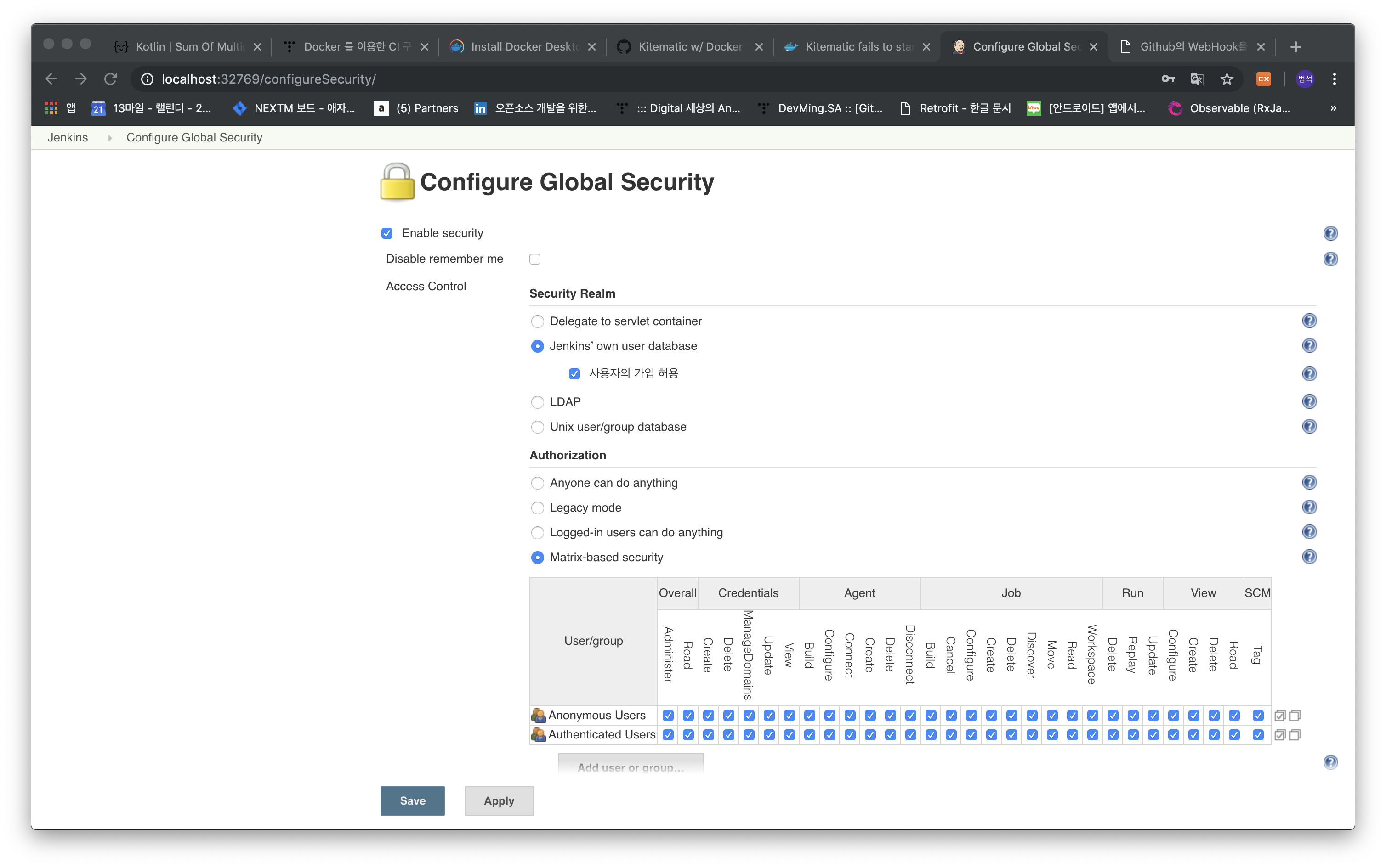 Docker 를 이용한 CI 구축 -2 (Jenkins Sequrity Setting)