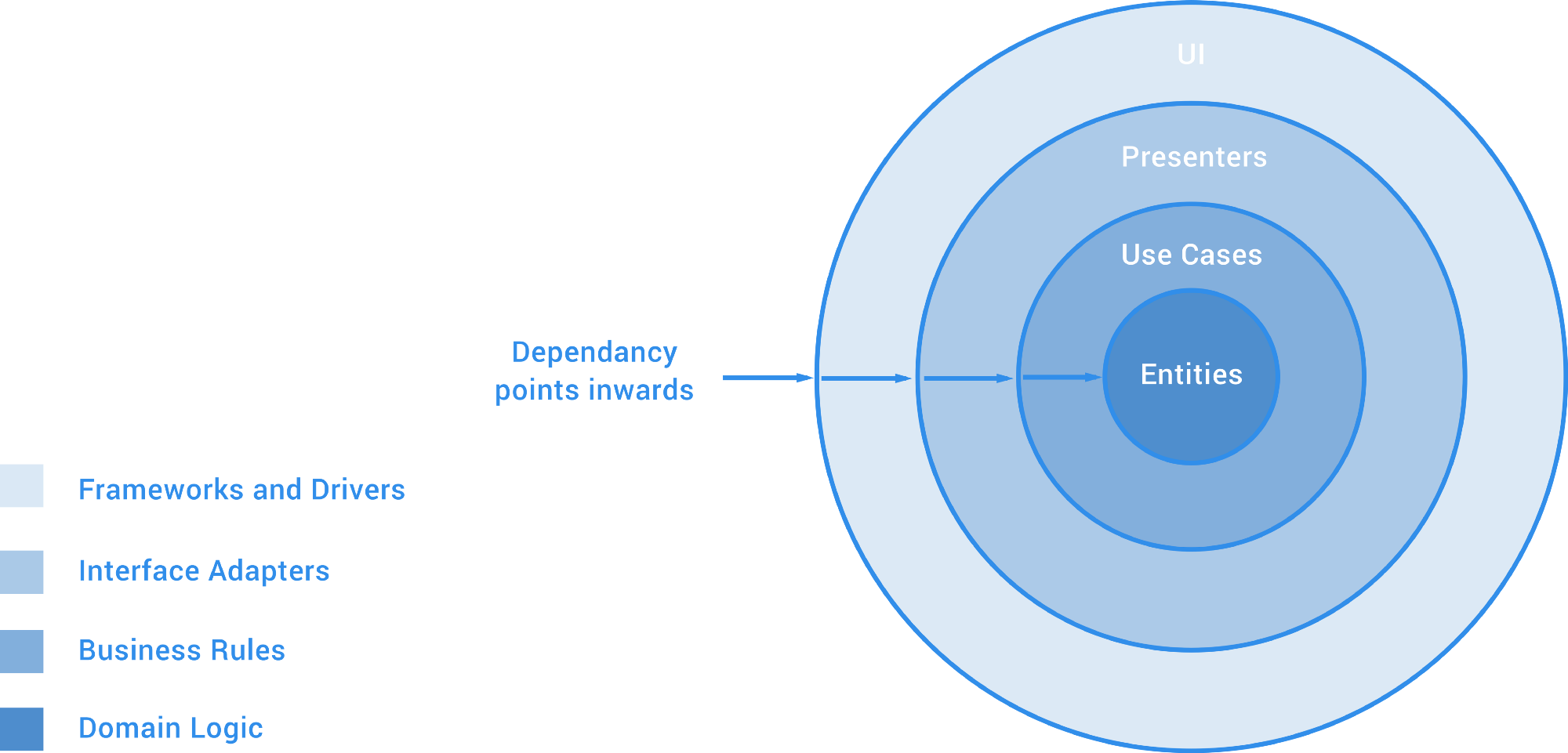 가장 안쪽의 Entities가 사용자가 실제로 생각하는 개념의 단위입니다. Clean Architecture는 서버쪽 내용이지만 안드로이드에서도