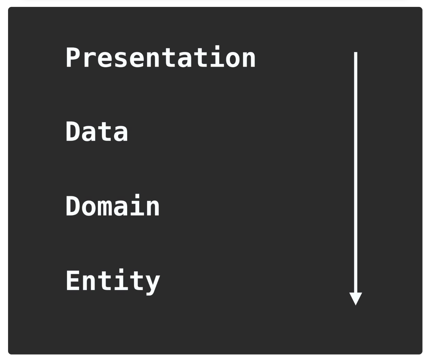 이 레이어 간의 의존성은 안쪽으로만 발생하여야 합니다. 가장 하단부의 레이어일 수록 의존성이 낮아야합니다.