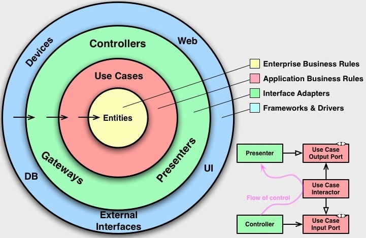 Robert Martin이 소개한 CleanArchitecture 다이어그램입니다.