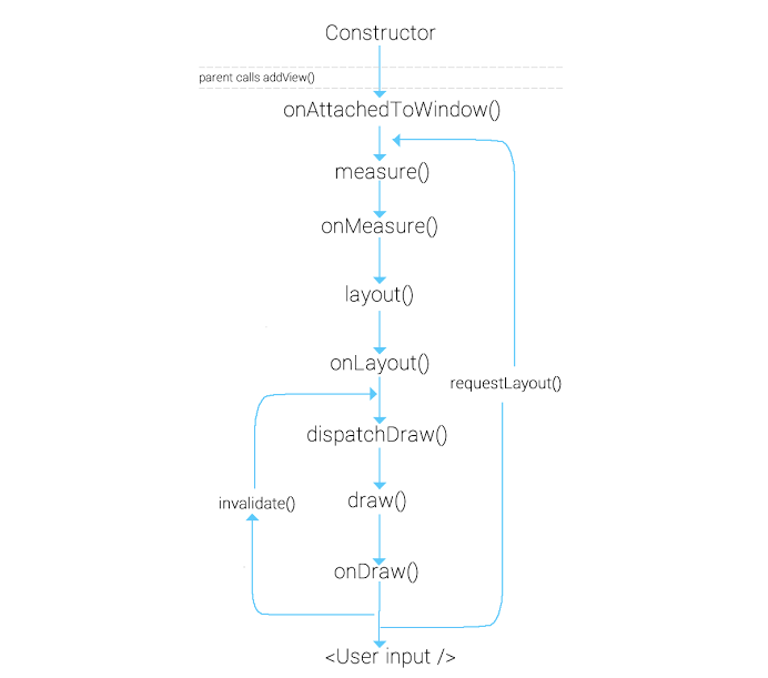 - onMeasure()부터 다시 뷰의 그린다. 뷰의 사이즈가 변경될때 그것을 다시 재측정해야하기에 lifecycle을 onMeasure()부터 순회하면서 뷰를 그립니다.